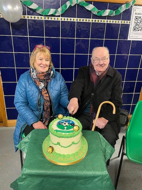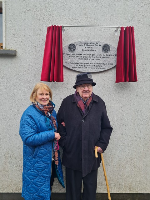 Following his address, the plaque was unveiled at the clubhouse door, after which everyone gathered inside for Frank & Bernie to cut the ‘Thank You’ cake. It was a lovely, relaxed opportunity to reminisce about the early days of the club, enjoy a cuppa & catch up with family members & friends. It was a very special day, not just for Frank & Bernie, but for the entire Colemanstown United community. The plaque now stands as a reminder of what can grow from trust, generosity & community spirit. On behalf of everyone connected with the club, past & present, we extend our deepest thanks to Frank & Bernie Burke & their family for making Colemanstown United what it is today.