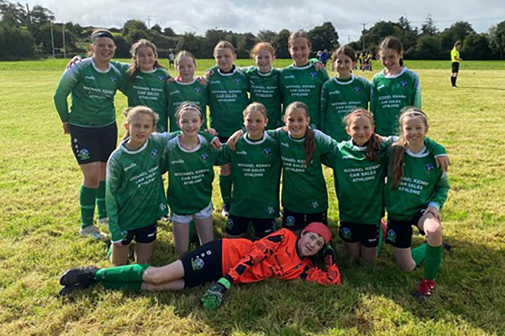Our U12 Girls compete in Division 2 of the U13 Girls Galway league. Neil Ryan manages the team. For training times please contact Neil on 086 822 2303. Our U12 Girls Team are sponsored by Michael Kenny Car Sales, Athlone. See Galway FA Fixtures for up to date league table for our U12 Girls.